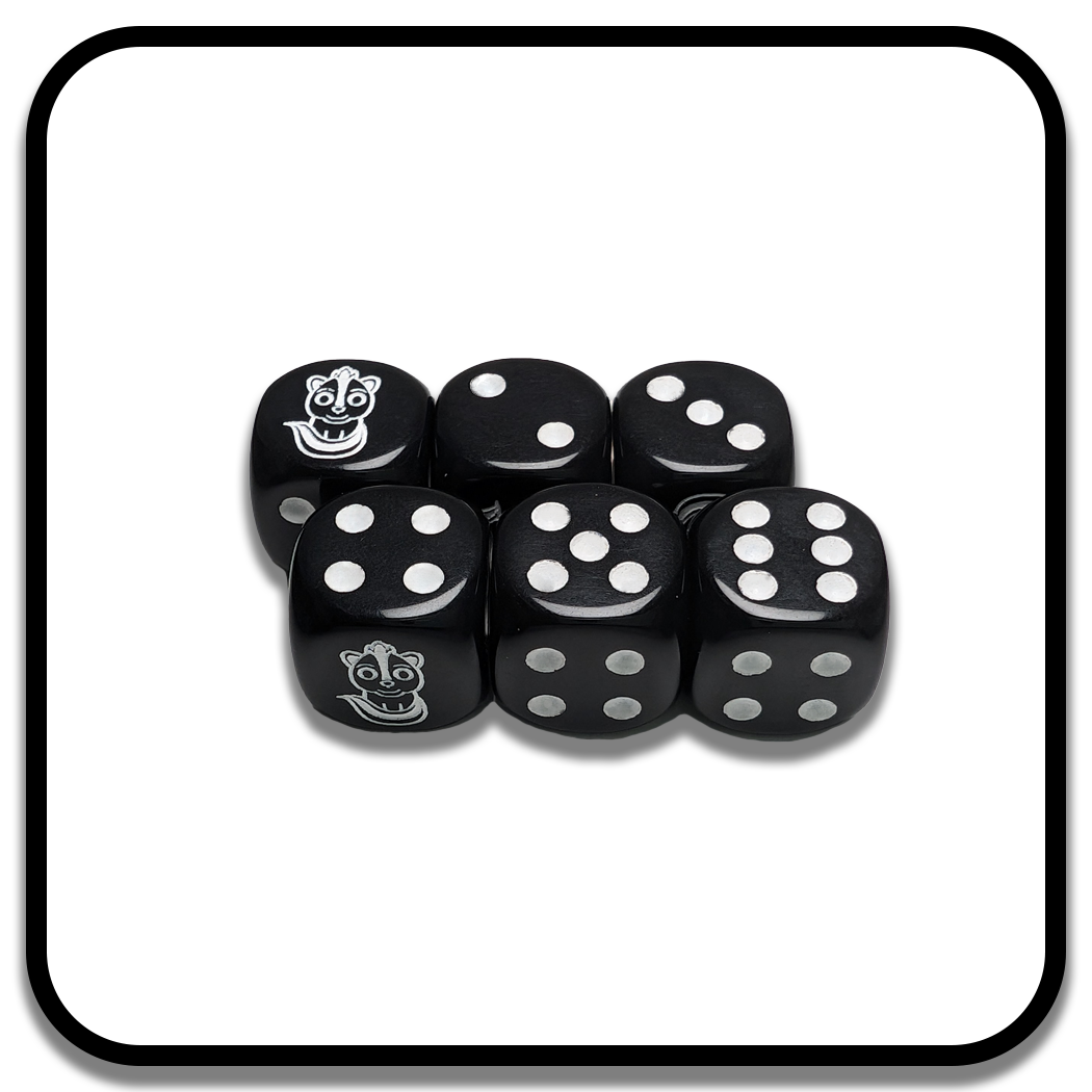 - Custom Skunk Icon: The '1' side is replaced with our mischievous skunk icon, adding excitement and a bit of unpredictability to each roll.